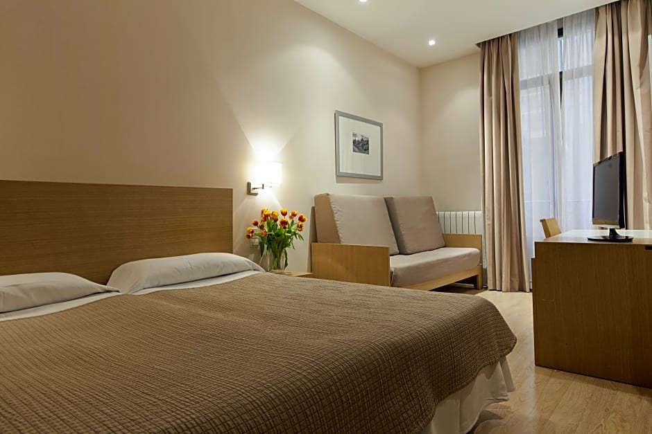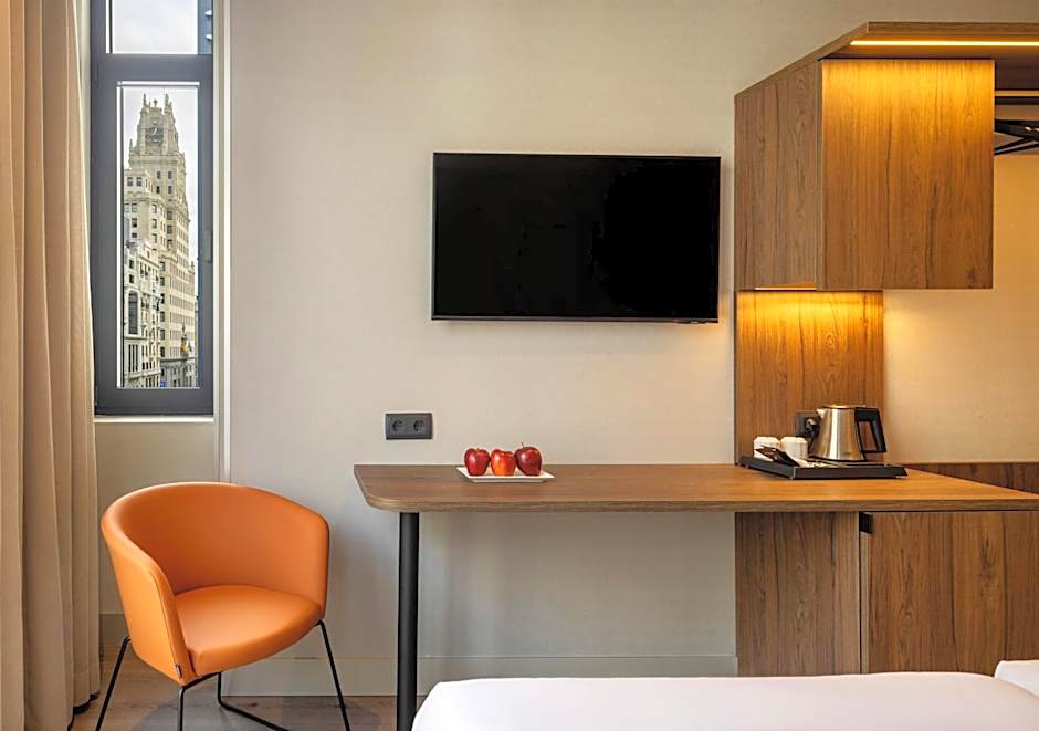 This quadruple room has views of Gran Vía Avenue. It features a satellite TV, a safe, desk and a telephone. It has central heating and comes with a private bathroom with hairdryer.